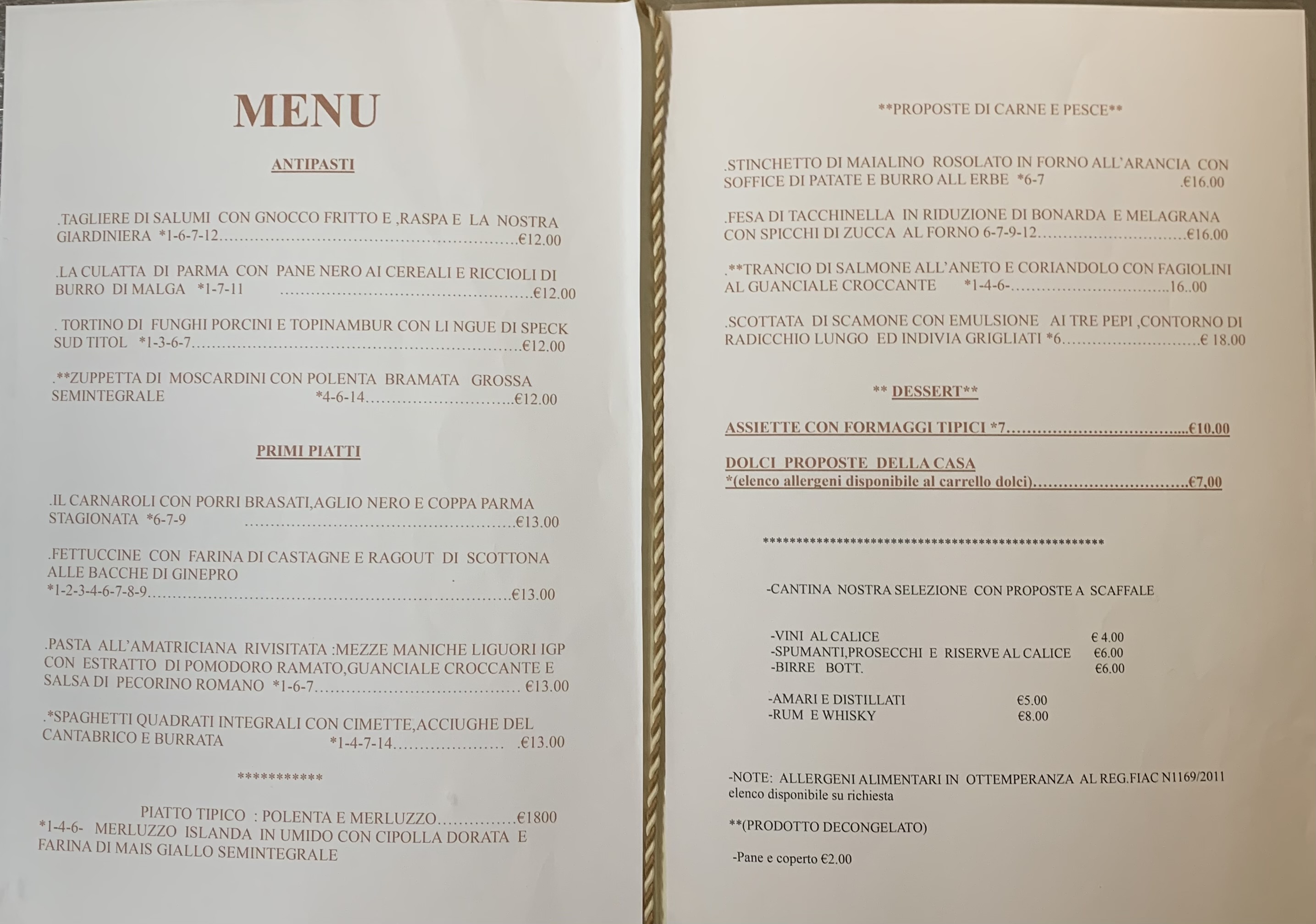 Menù alla Carta
