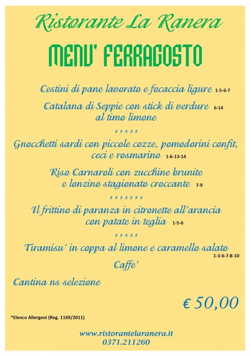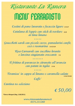 Menu di Ferragosto 2025