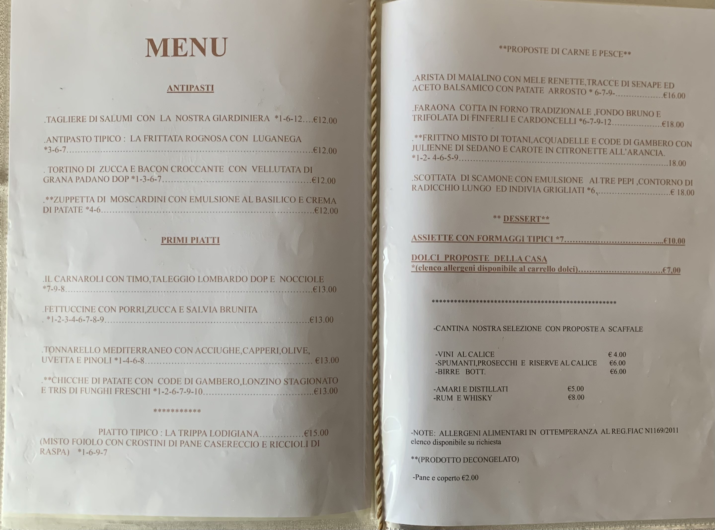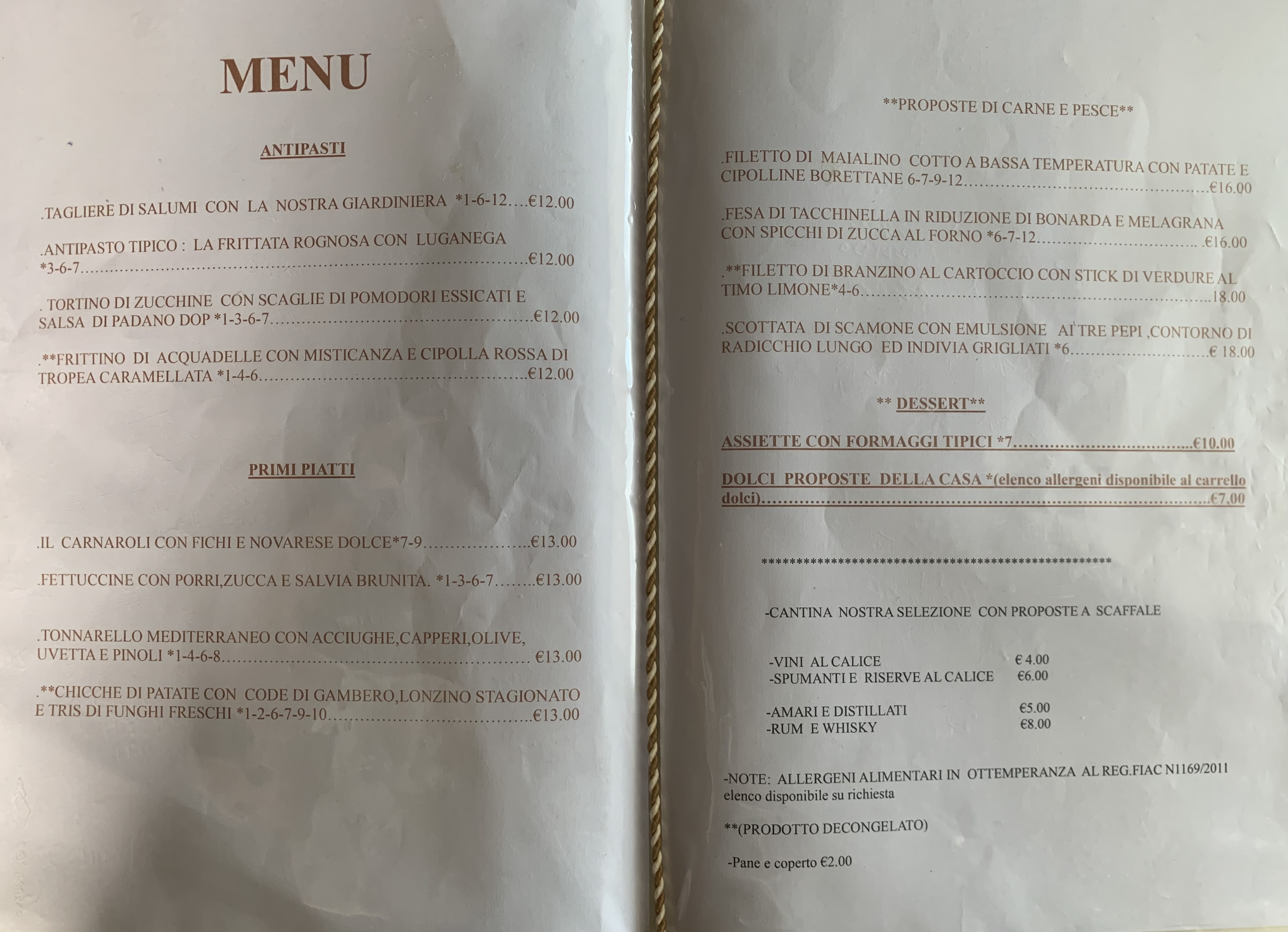 Menù alla Carta